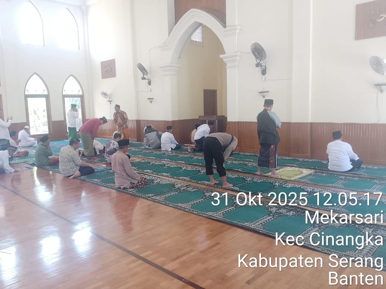 *POLRES CILEGON* - Kapolsek Cinangka Polres Cilegon Polda Banten dan Jajaran melaksanakan giat Juma't keliling dalam rangka silaturahmi menjalin kemitaraan dan menjaga Harkamtibmas di Desa Binaannya sebagai bentuk mendukung Program Quick Wins Presisi Polri, Jumat (31/10/2025).