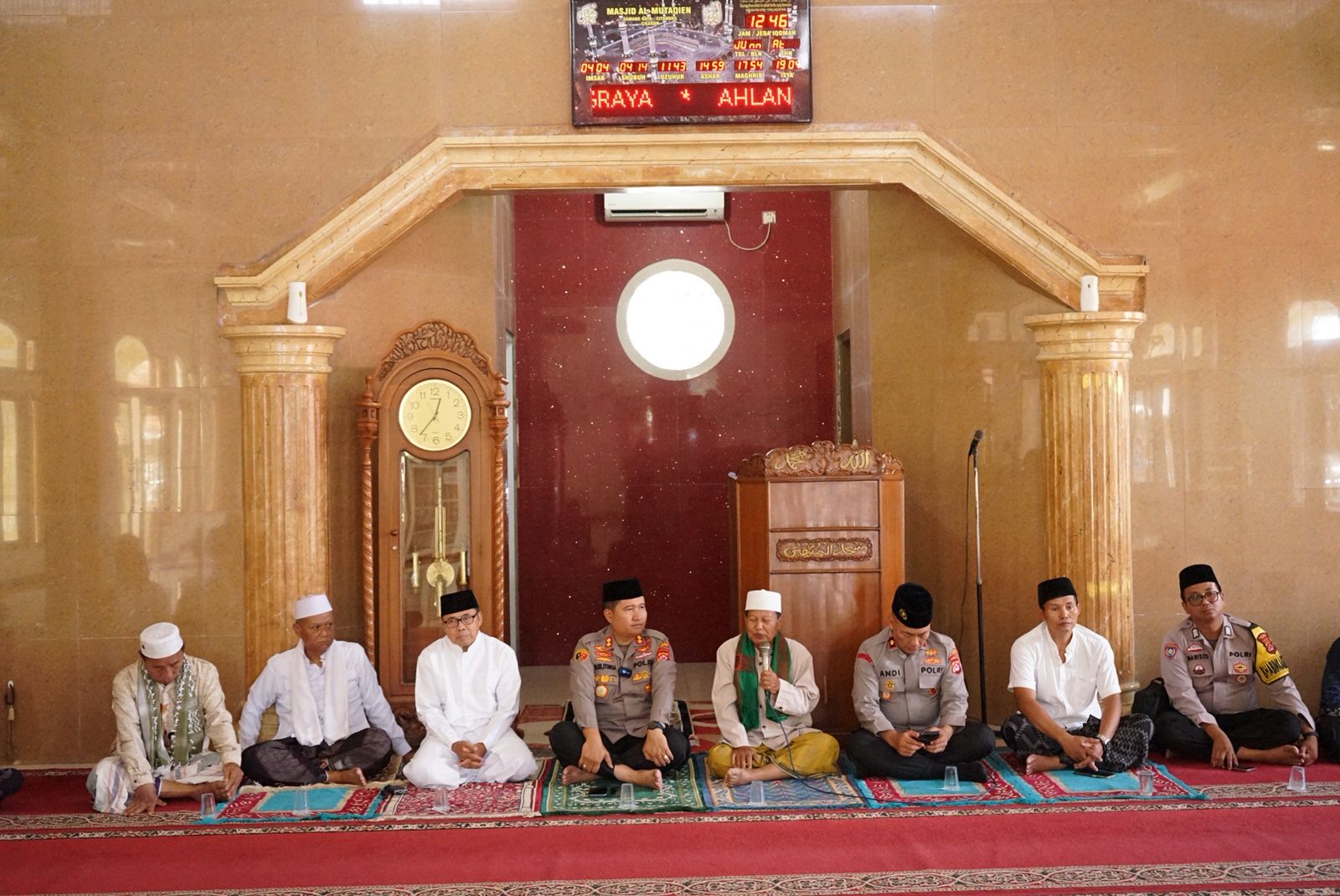 Kegiatan Jumat Keliling ini diakhiri dengan sesi tanya jawab dan penyerahan bingkisan kepada pengurus Masjid Al-Muttaqien sebagai bentuk apresiasi dan dukungan Polres Cilegon terhadap kegiatan keagamaan di wilayah setempat.