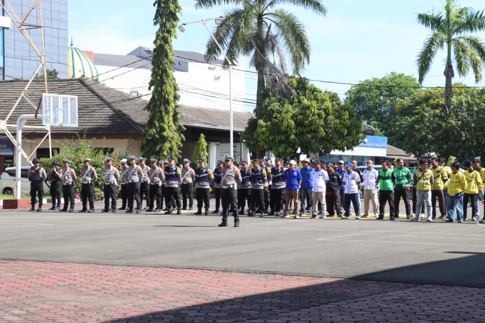 Apel Bersama Buruh dan Ojol, Kapolres Cilegon Ajak Perkuat Persatuan dan Jaga Kondusifitas Kota