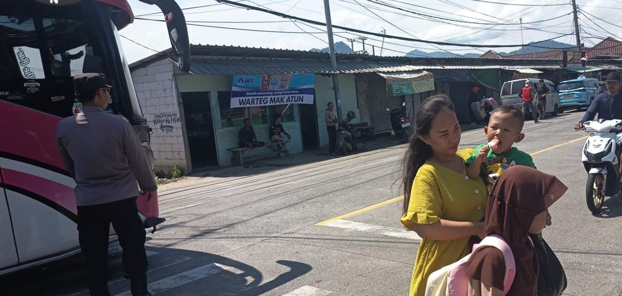 Polsek Anyar Lakukan Pengaturan Lalu Lintas di Jalur Anyar - Cinangka