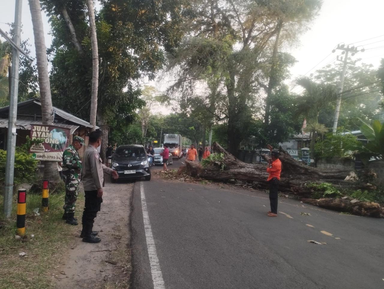 *Jalan Raya Tertutup Pohon Roboh, Warga dan Petugas Bergerak Cepat Lakukan Evakuasi Bersama*