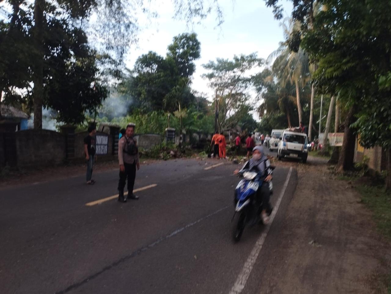 Kapolres Cilegon Polda Banten AKBP Martua Raja Taripar Laut Silitonga Melalui Kapolsek Cinangka Polres Cilegon Polda Banten IPTU Rusnata Mengatakan di Jl Raya Cinangka Palka tepatnya di Kp.Lebaksawo Ds. Sindanglaya Kec. Cinangka Kab. Serang telah terjadi pohon tumbang yang terjadi angin kencang serta pohon yang sudah tua Tidak ada jiwa korban dalam kejadian tersebut, namun berdampak pada arus lalulintas dan menimbulkan antrian kendaraan dari arah Cilegon menuju Cinangka maupun sebaliknya
