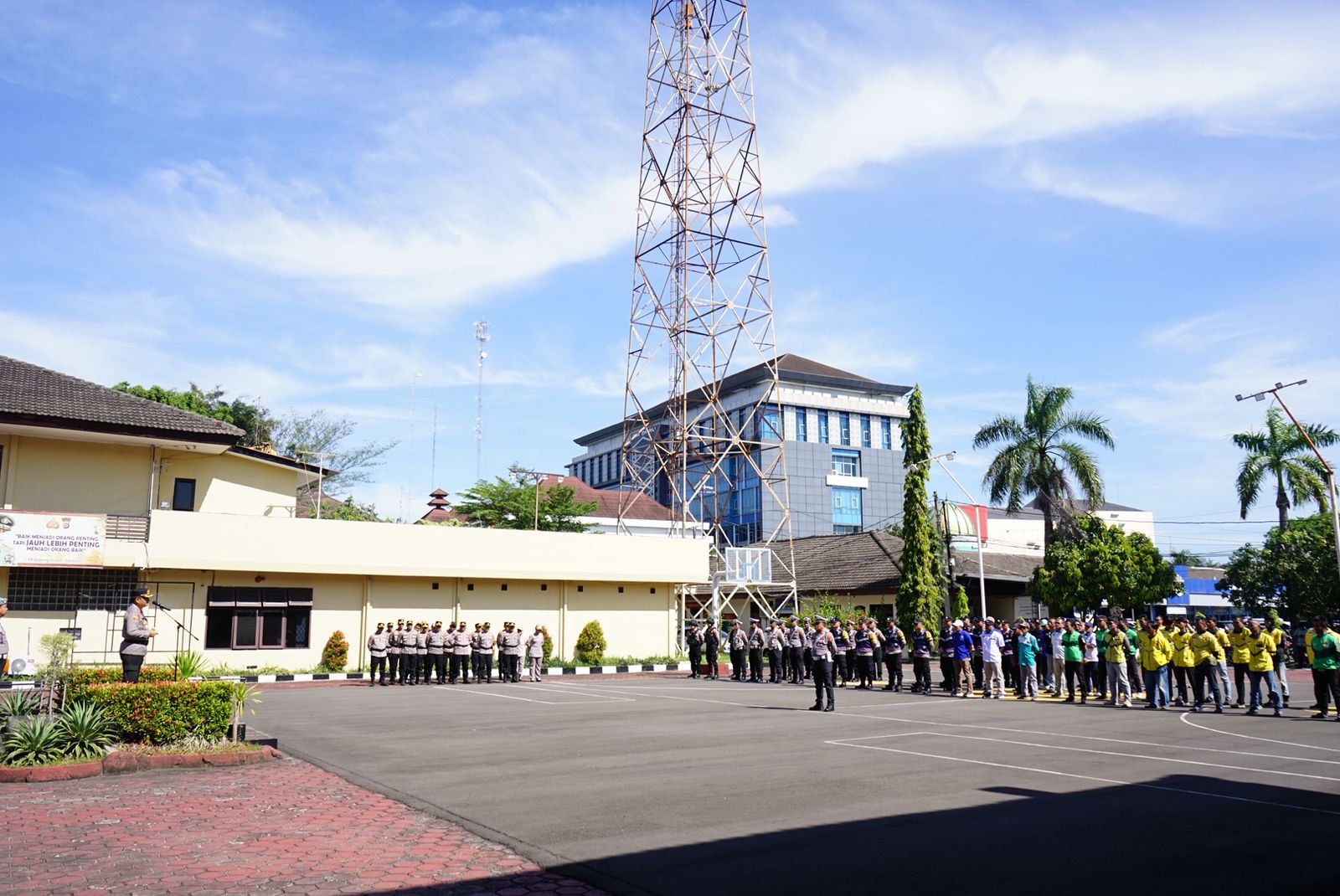 Apel yang dipimpin langsung oleh Kapolres Cilegon, AKBP Dr. Martua Raja Taripar Laut Silitonga, S.H., S.I.K., M.Si., ini bertujuan memperkuat semangat kebersamaan dan menjaga kondusifitas di wilayah hukum Polres Cilegon. Turut hadir PJU Polres Cilegon, para perwira, personel gabungan satuan fungsi, perwakilan serikat buruh, serta komunitas ojol Kamtibmas Kota Cilegon.