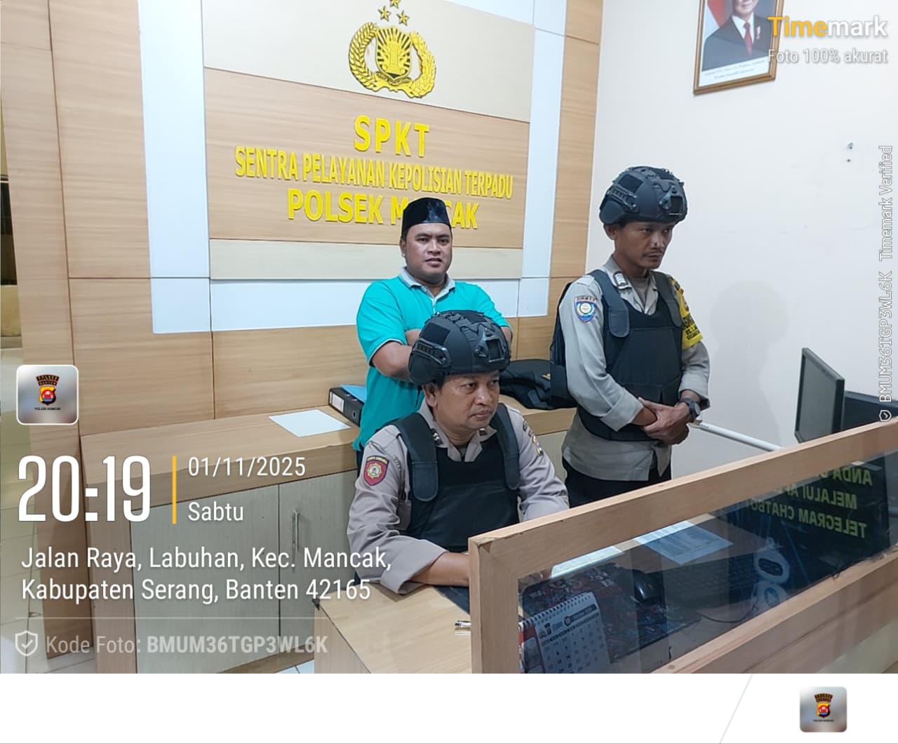 “Anggota piket jaga Polsek Mancak AIPTU DODIK, AIPTU YUDO, BRIPKA SATRIA.