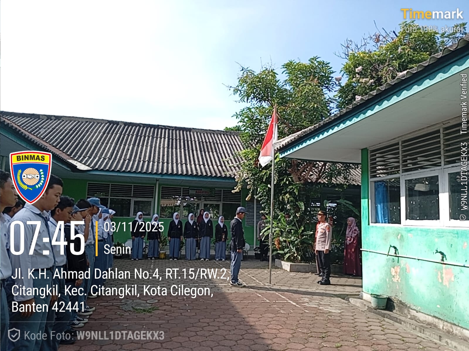 Cilegon – Bhabinkamtibmas Polsek Ciwandan Dampingi Kabag SDM Polres Cilegon Polda Banten KOMPOL Entang Cahyadi Menyambangi SMP Al-A’raaf Dikelurahan Tamanbaru Kecamatan Citangkil, Menyampaikan Pesan-pesan Kamtibmas Dan Memberikan Imbauan, Senin (03/11/2025).