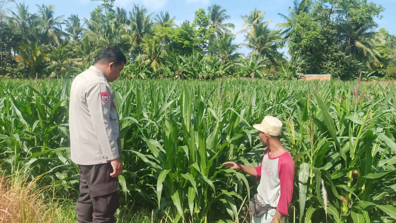 Anggota Bhabinkamtibmas Polsek Anyar Monitoring dan Cek Lahan Tanaman Jagung Di Wilayah