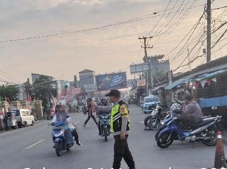 Polsek Anyar Melaksanakan Pengaturan Lalu Lintas Jalur Anyar - Cinangka Dalam Mengurai Kendaraan