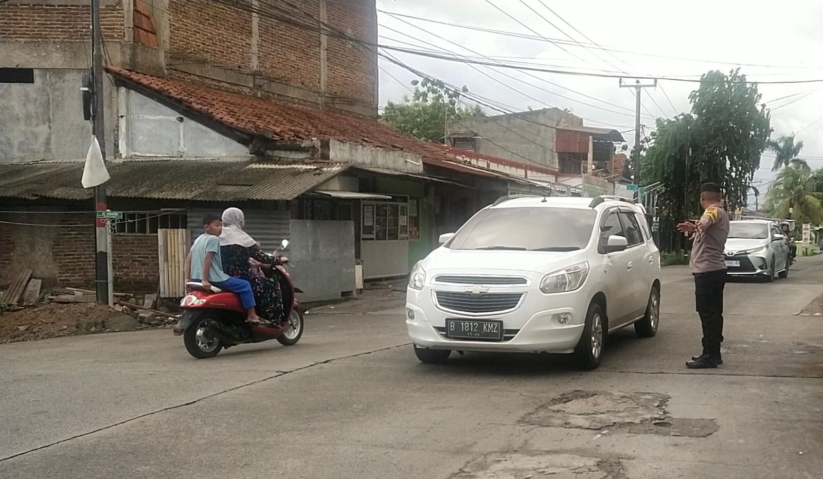 Polsek Cilegon pengaturan arus lalin lancarkan arus kendaraan.