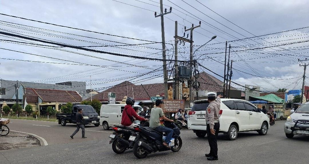 Pengaturan Lalu Lintas Yang Dilakukan Polsek Anyar Di Jalur Anyar - Cinangka Urai Kendaraan
