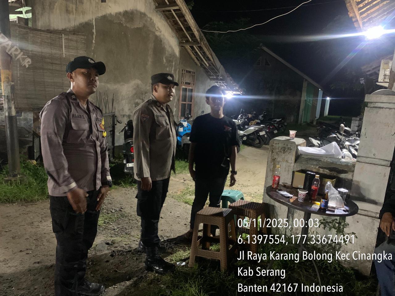 *Cilegon* – Dalam Rangka Pencegahan Kejahatan Jalanan dan Memelihara situasi keamanan dan menjaga serta memberikan rasa aman dan nyaman di masyarakat,Salah satu upaya untuk mewujudkan hal tersebut sebagaimana yang dilakukan oleh Personil Polsek Cinangka Polres Cilegon Polda Banten melaksanakan giat patroli blue light malam hari hingga menjelang pagi, Rabu (05/11/2025).