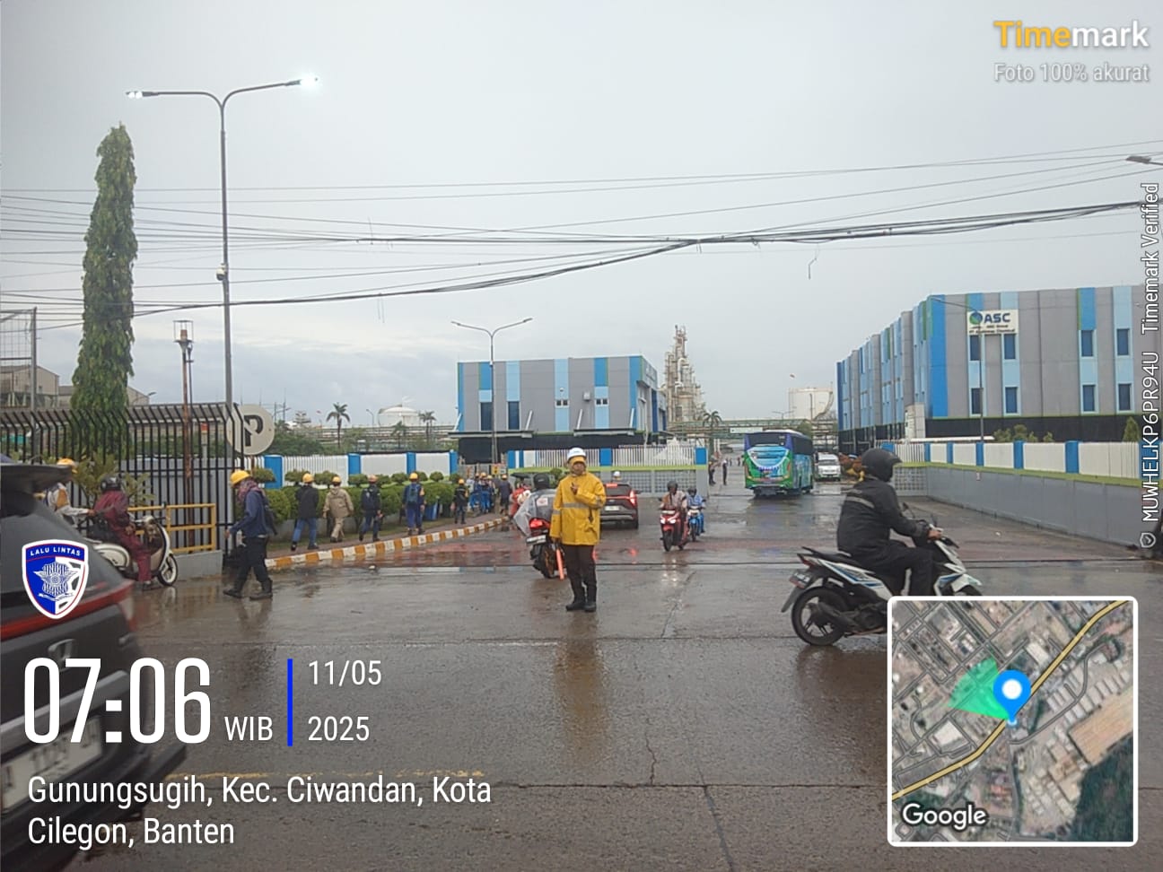 Cilegon - Personil  Polsek Ciwandan Polres Cilegon Polda Banten melaksanakan giat Strong Poin Pengaturan Lalu Lintas Disimpang Brown Kelurahan Gunung Sugih guna menciptakan ketertiban, keamanan dan Kelancaran Lalu-lintas bagi masyarakat, Rabu (05/11/2025).