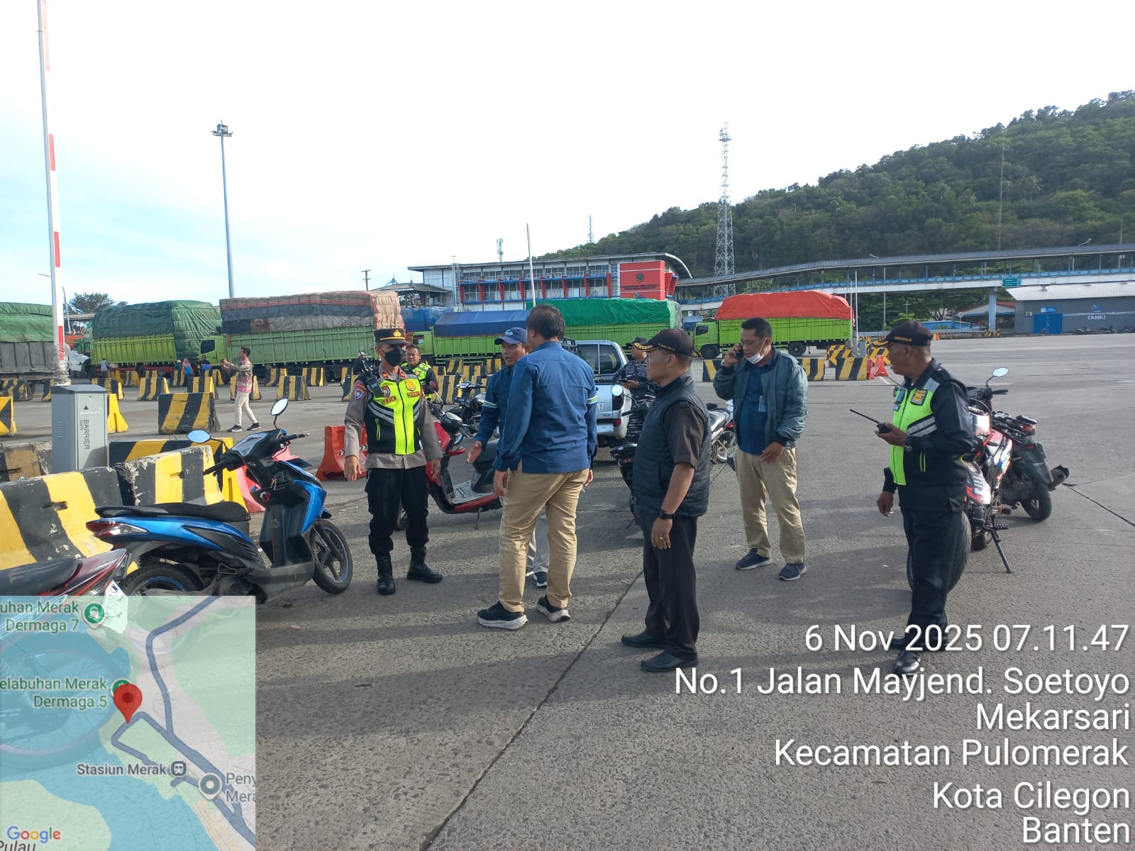 Cilegon - Personel Polsek Kskp Merak Polres Cilegon Polda Banten melaksanakan sambang dan patroli kawasan pelabuhan merak dalam rangka menjaga Harkamtibmas di Kawasan Pelabuhan Merak, Kamis (06/11/2025).