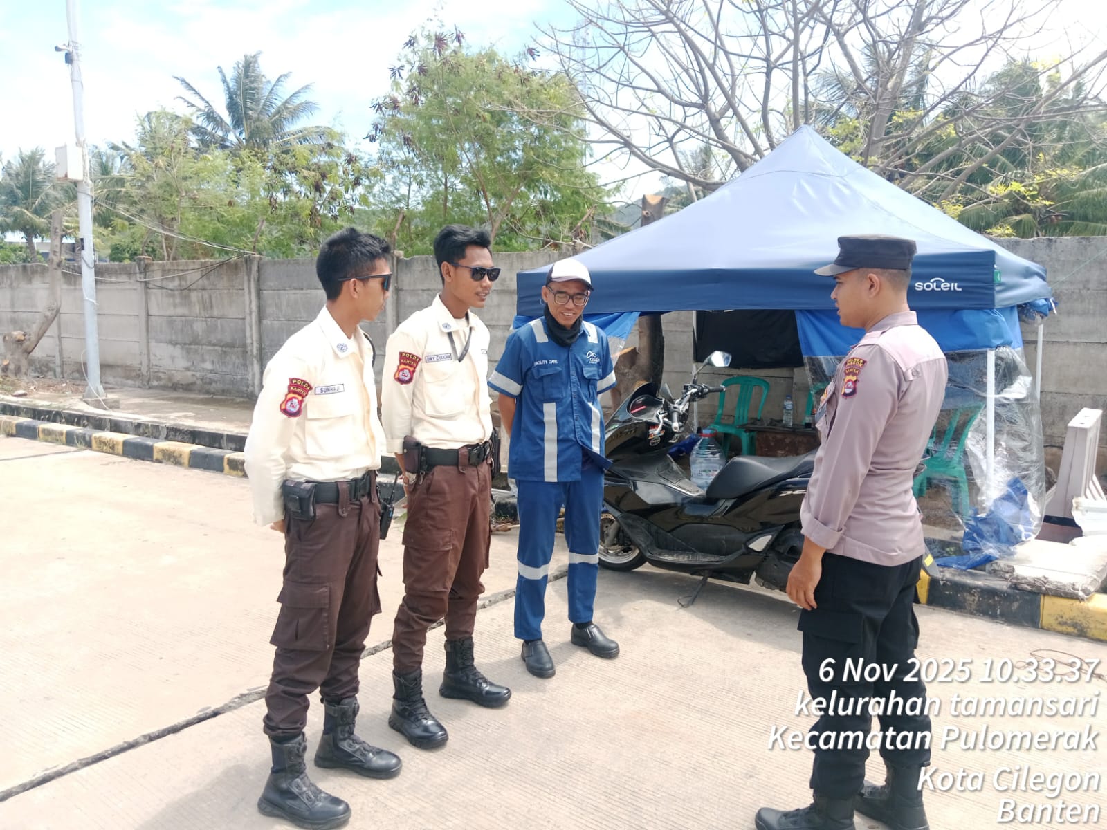 Kapolres Cilegon Polda Banten AKBP Martua Raja Taripar Laut Silitonga Melalui Kapolsek Kskp Polres Cilegon Polda Banten AKP Gusti Almasri P mengatakan Bhabinkamtimbmas Polsek Kskp Rutin menyambangi anggota Scurity dan memberikan himbauan agar para anggota Scurity bisa melaksanakan tugas menjaga keamanan di Kawasan Pelabuhan Merak.