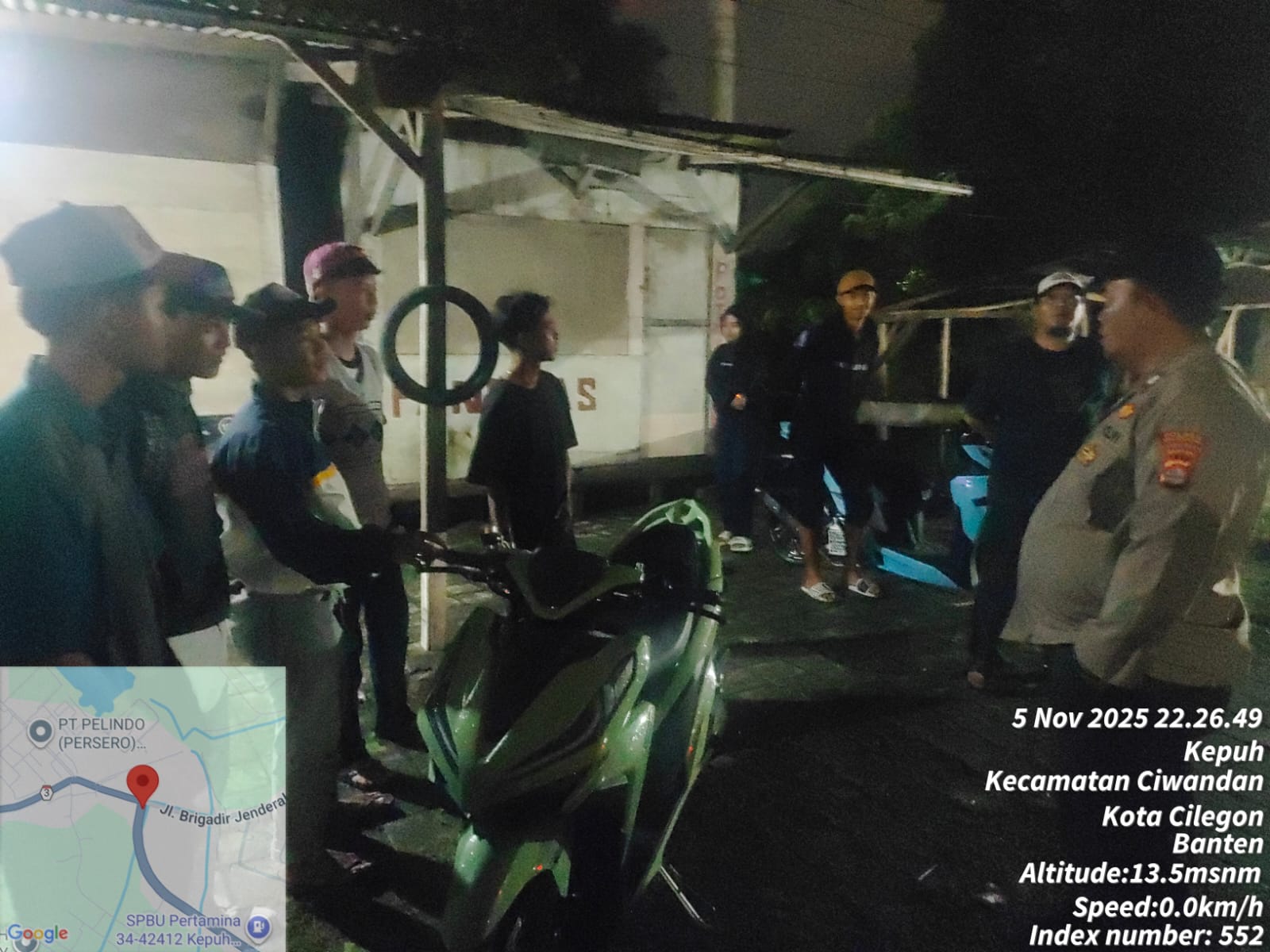 Cilegon - Polsek Ciwandan Polres Cilegon Polda Banten kembali menunjukkan komitmennya dalam menciptakan keamanan dan ketertiban masyarakat (kamtibmas) yang kondusif melalui Kegiatan Patroli Malam, Kegiatan ini dilakukan secara rutin dengan berkeliling di daerah hukum Polsek Ciwandan, Kamis (06/11/2025).