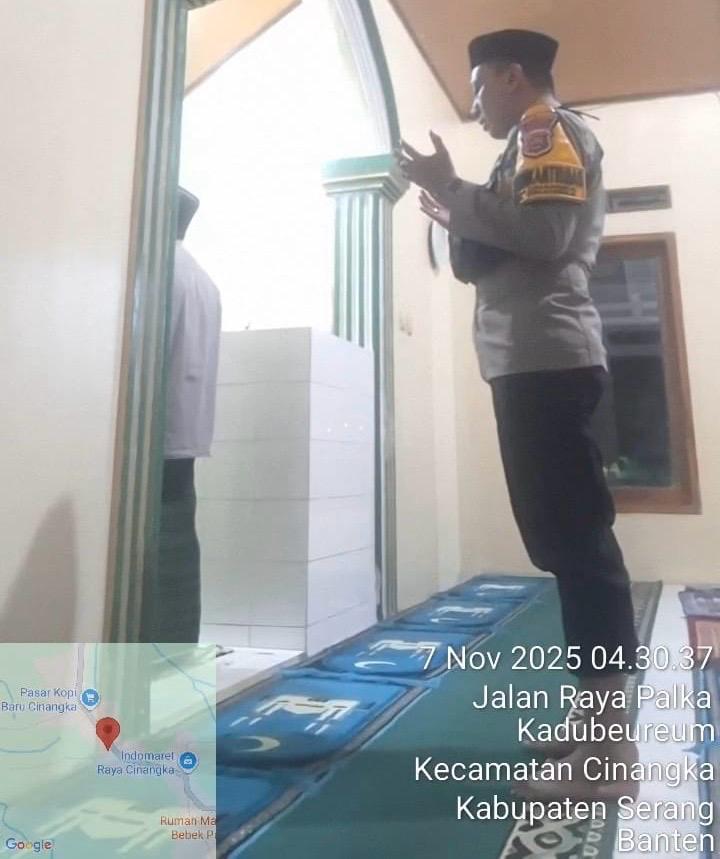 *POLRES CILEGON* Bhabinkamtibmas Polsek Cinangka Polres Cilegon Polda Banten laksanakan Subuh keliling di Desa Pasauran Kec. Cinangka, Jumat (07/11/2025)