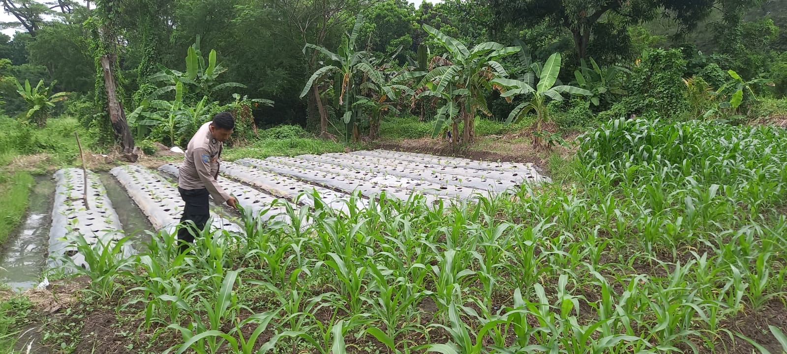 Bhabinkamtibmas Kotabumi Cek Tanaman Jagung di Jalan Kubang Lampung, Wujud Dukungan Ketahanan Pangan