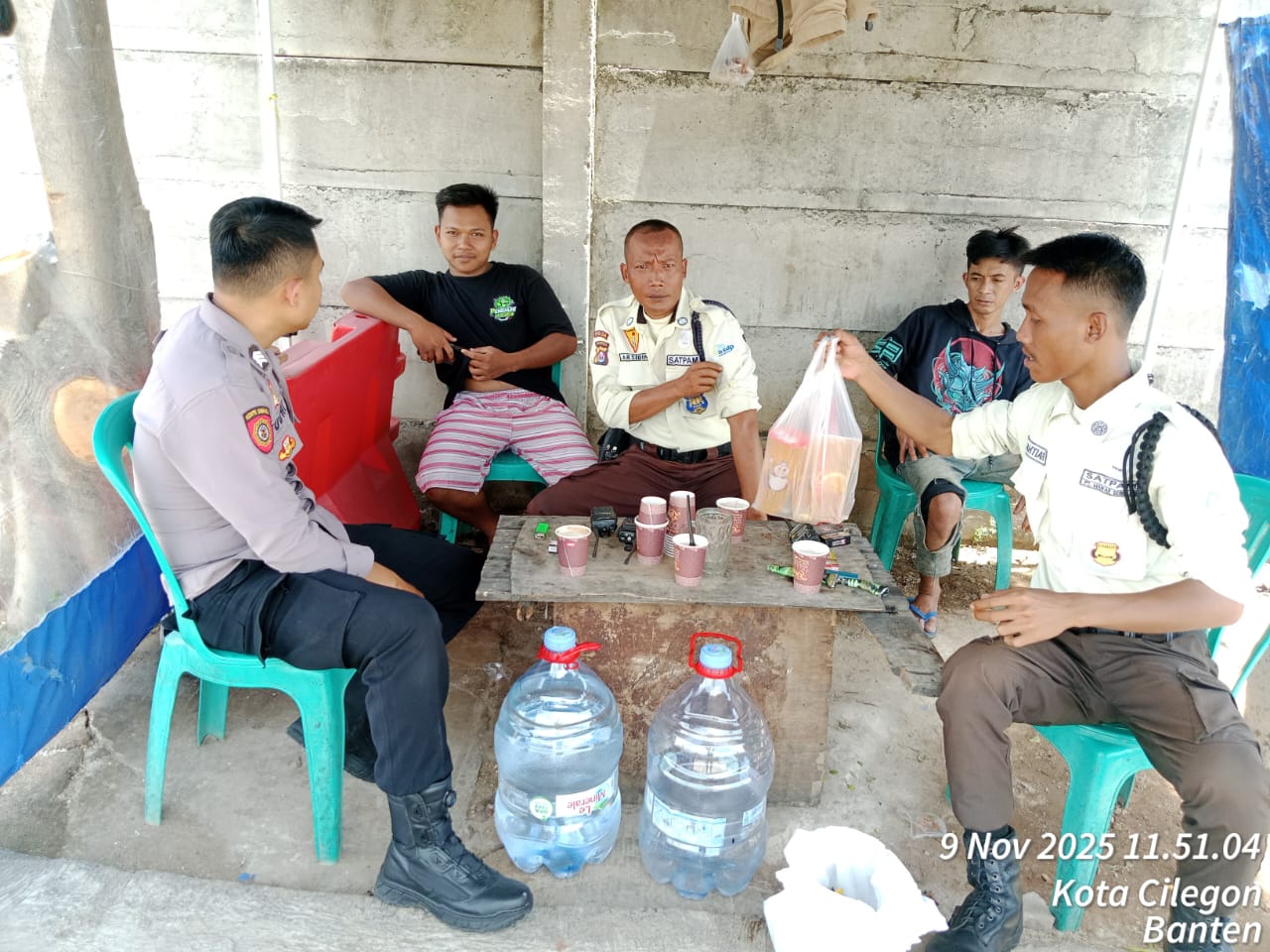 Cilegon - Personil Polsek Kskp Merak Polres Cilegon Polda Banten Laksanakan Pembinaan Scurity Guna Memelihara Harkamtibmas, Sebagai Petugas satuan pengamanan atau security merupakan bagian dari mitra dan kepanjang tanganan tugas Polri yang membantu melaksanakan pengamanan di daerah binaannya, Minggu (09/11/2025).
