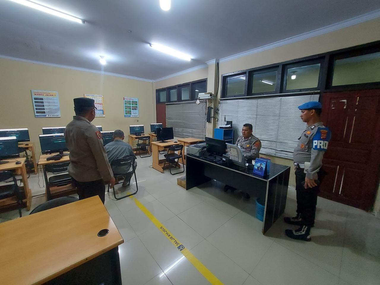 Cilegon,Polres Cilegon Polda Banten Pada Senin/10/11/2025 Pukul 10.00 Wib, personel siwas Polres Cilegon Brigadir Hadi Sudrajat melaksankan pengawasan terhadap pelayaan yang ada di sat lantas Polres Cilegon, Khususnya pelayanan SIM. (Surat Ijin Mengmudi)