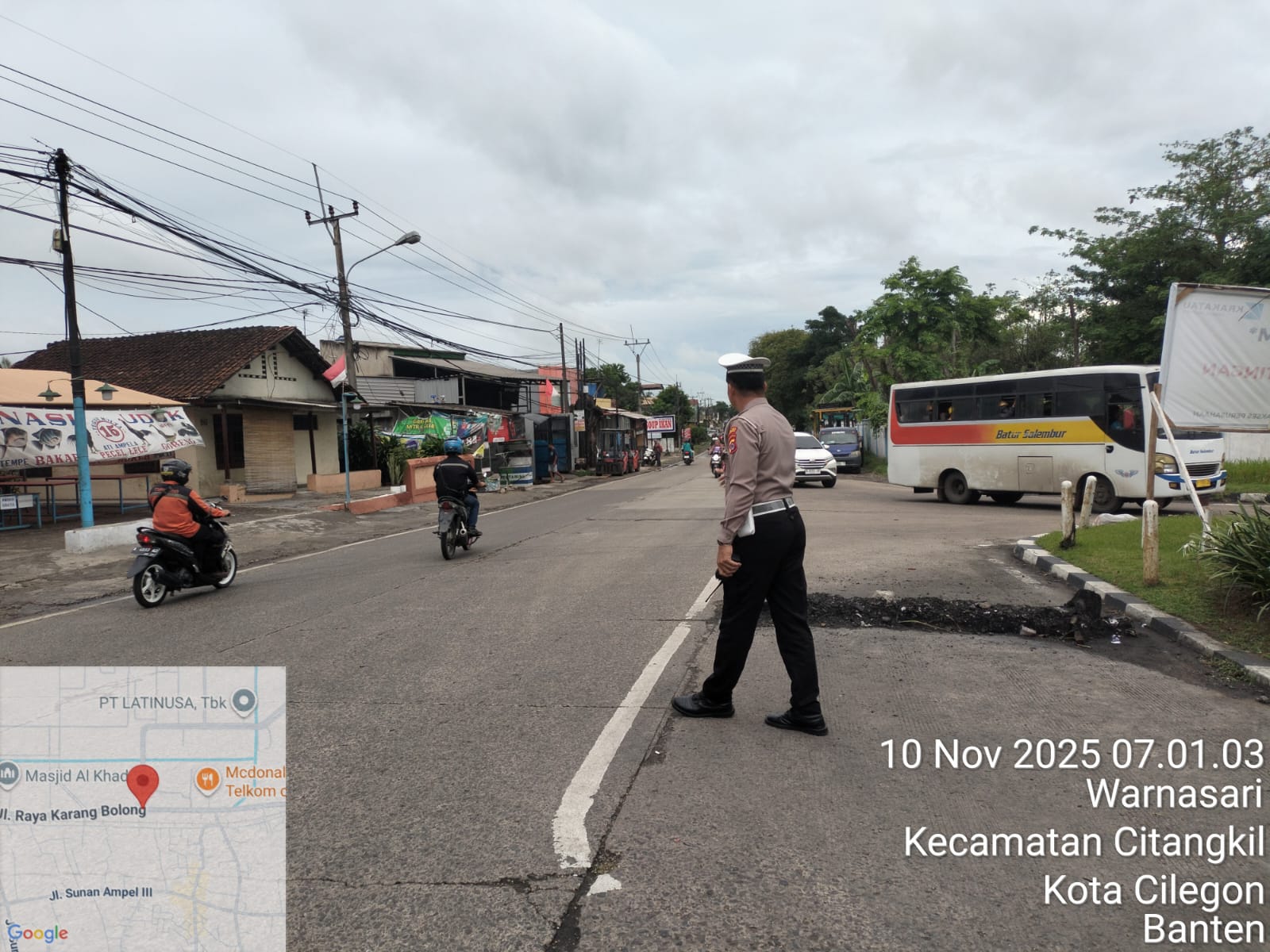 Cilegon - Tingginya mobilitas masyarakat pada jam-jam sibuk, tingkat kerawanan baik itu kemacetan ataupun kecelakaan pasti ada potensi, sehingga untuk mengantisipasi hal tersebut Personil Polsek Ciwandan Polres Cilegon Polda Banten Bhabinkamtibmas melaksanakan Strong Point pada sejumlah lokasi, Kamis (10/11/2025).