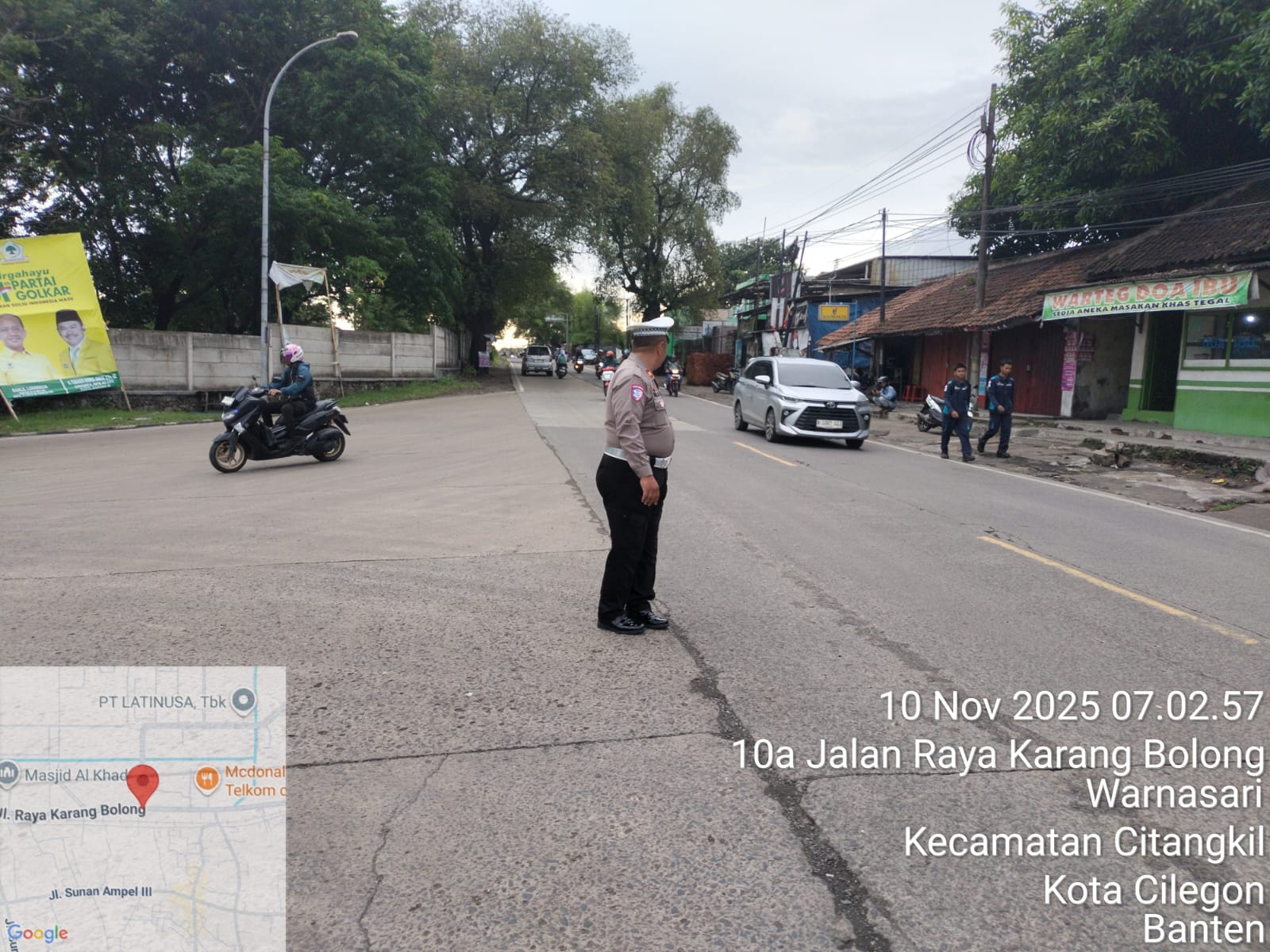 Cilegon - Tingginya mobilitas masyarakat pada jam-jam sibuk, tingkat kerawanan baik itu kemacetan ataupun kecelakaan pasti ada potensi, sehingga untuk mengantisipasi hal tersebut Personil Polsek Ciwandan Polres Cilegon Polda Banten Bhabinkamtibmas melaksanakan Strong Point pada sejumlah lokasi, Kamis (10/11/2025).