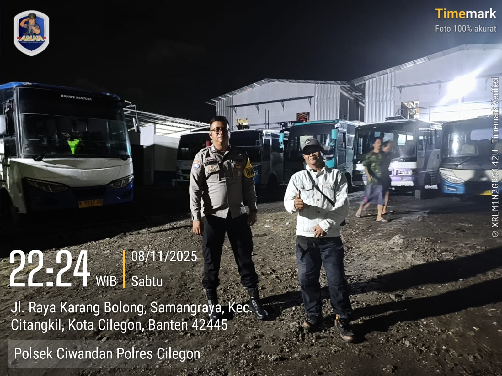 Cilegon - Upaya mengantisipasi aksi kejahatan pada daerah binaan dan memberikan rasa aman dan nyaman kepada warga binaan, Bhabinkamtibmas Polsek Ciwandan Polres Cilegon Polda Banten sambangi warga pada malam hari, Swnin (10/11/2025).