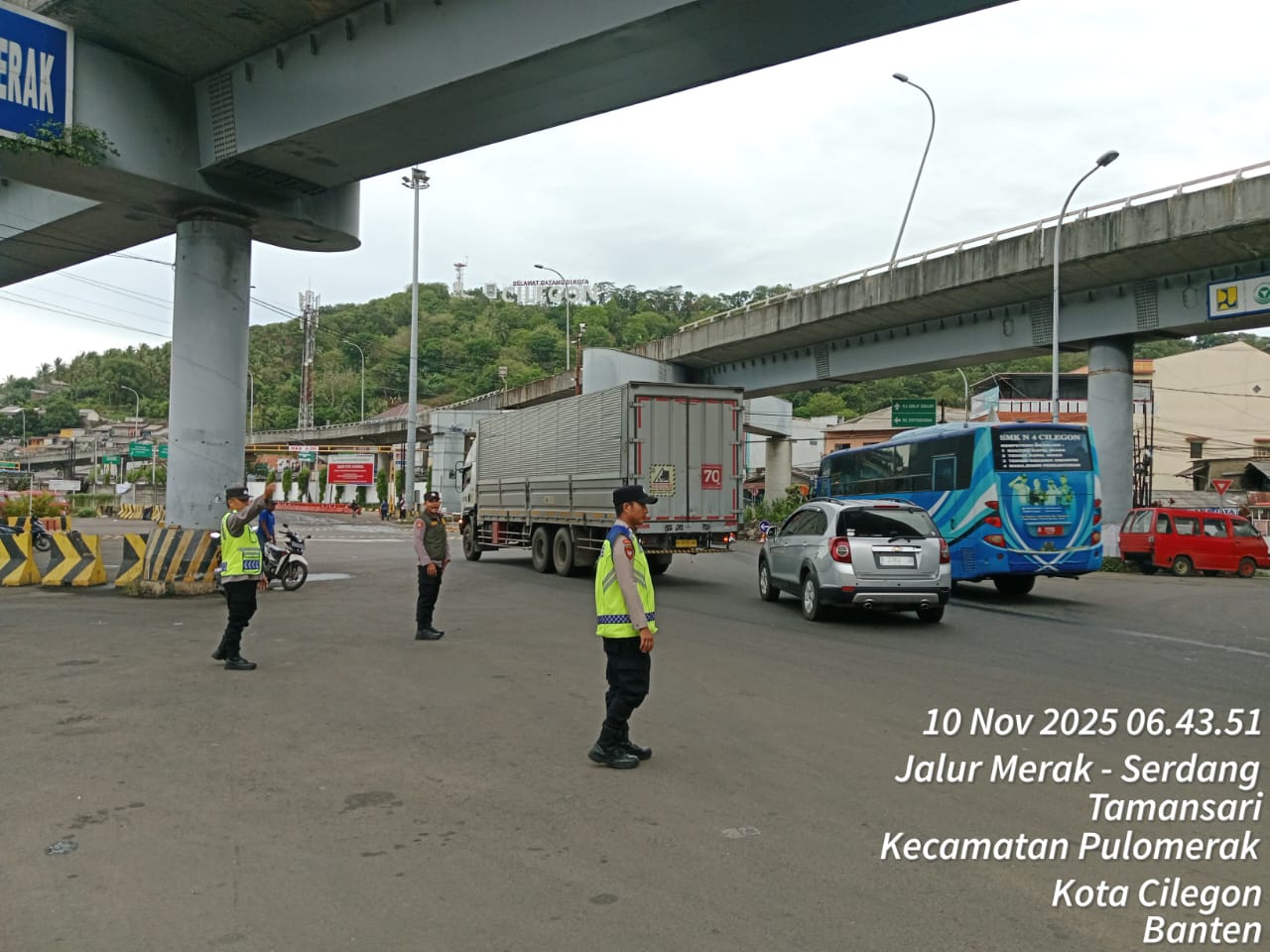 Cilegon - Dalam rangka peningkatan pelayanan prima kepada masyarakat, Kskp Merak Polres Cilegon Polda Banten melaksanakan pengaturan antrian R4 yang akan masuk ke Kapal Ferry di Pelabuhan Merak, Senin (10/11/2025).