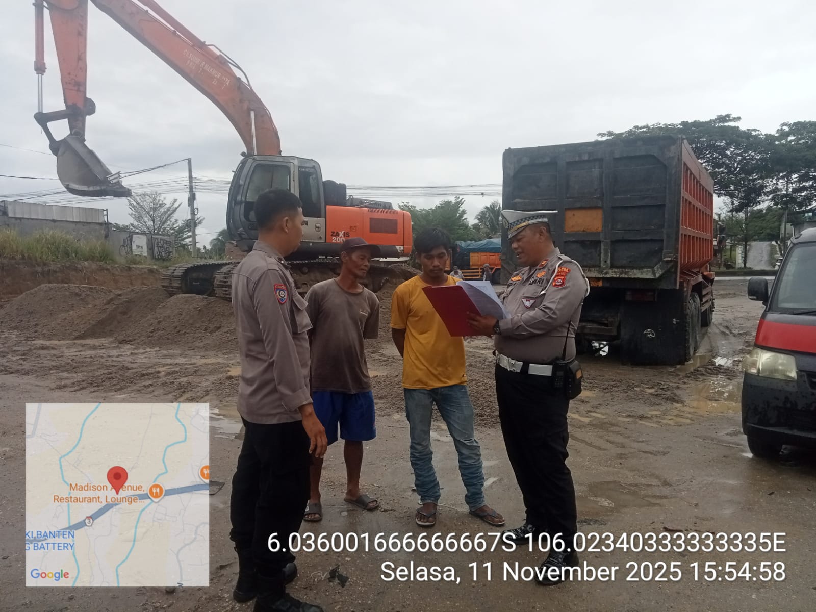 Panit Lantas Dan Bhabinkamtibmas Polsek Ciwandan Datangi Stokfile Pasir