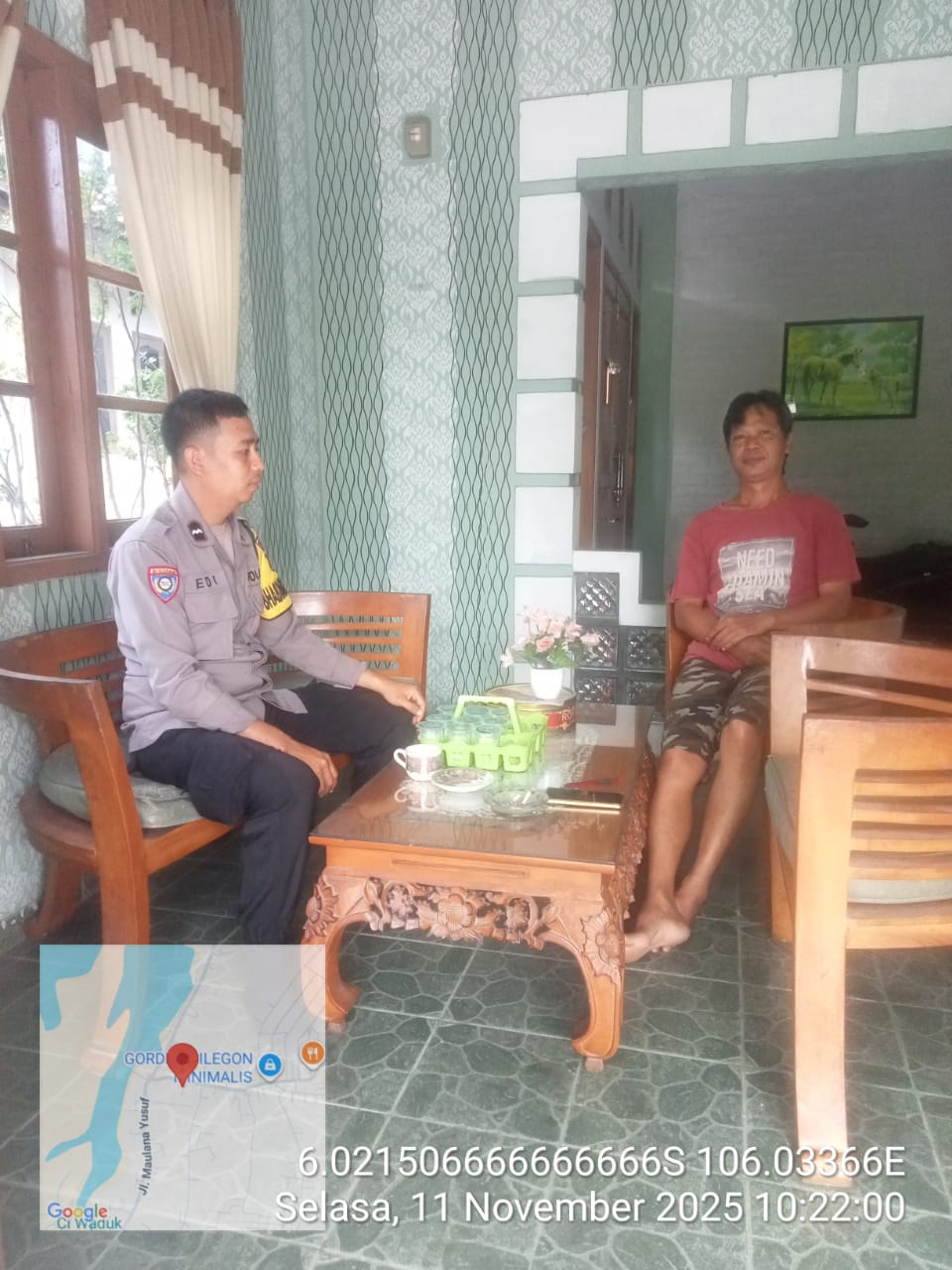 Cilegon – Bhabinkamtibmas Polsek Ciwandan Bersilaturahmi Dengan warga,Hal ini merupakan salah satu tugas Kepolisian yakni dengan melaksanakan kunjungan kepada masyarakat untuk menjalin silaturahmi yang lebih erat dan menyampaikan pesan-pesan kamtibmas serta mencari informasi yang berkembang di masyarakat agar tercipta situasi kamtibmas yang aman dan kondusif, Selasa (11/11/2025).