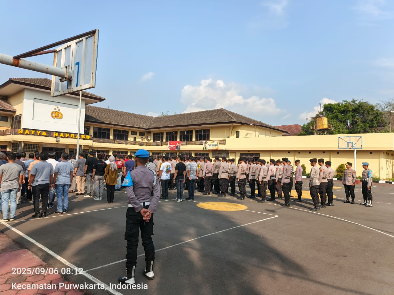 Personil Sipropam Polres Cilegon melakukan Pengecekan absensi kehadiran pada saat pelaksanaan apel pagi