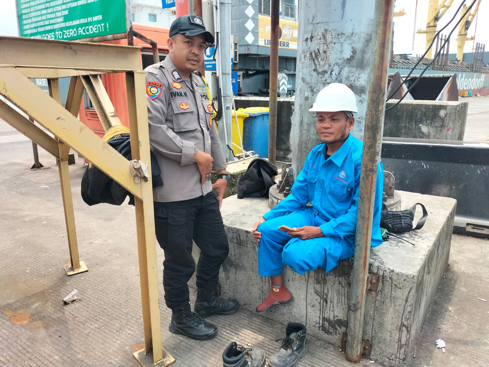Jalin Silaturahmi, Personil Bhabinkamtibmas Pelabuhan Polsek KP Banten berbincang dengan Buruh Pelabuhan