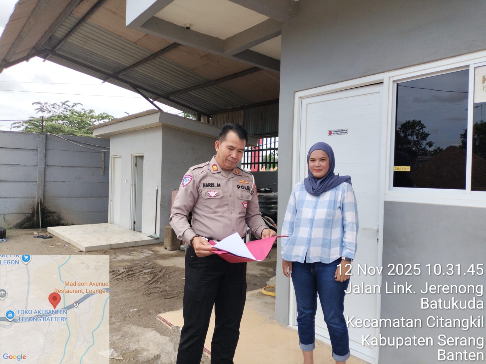 Cilegon - Kanit Lantas Polsek Ciwandan AKP Haris Munandar melaksanakan Himbauan SK Gubernur Dan monitoring stokfile pasir Didaerah hukum Polsek Ciwandan, Rabu (12/11/2025).