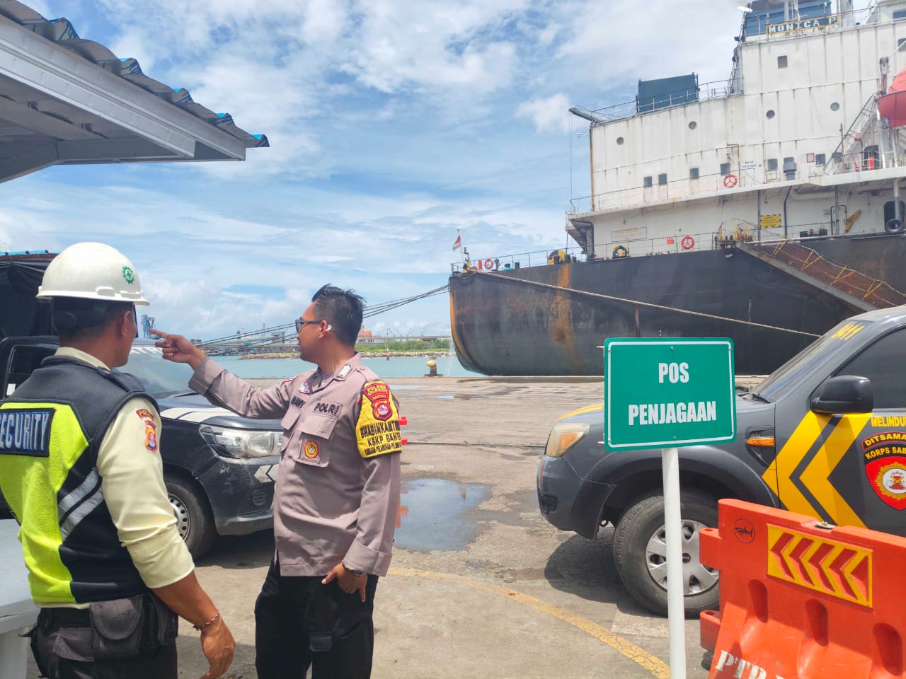 Kapolres Cilegon Polda Banten AKBP Martua Raja Taripar Laut Melalui Kapolsek Kskp Banten Polres Cilegon Polda Banten AKP Fredo Leonard Mengatakan Personil Polsek Kskp Banten Rutin menyambangi anggota Security dan memberikan himbauan agar para anggota Security bisa melaksanakan tugas menjaga keamanan di lingkungan Kawasan Pelabuhan.