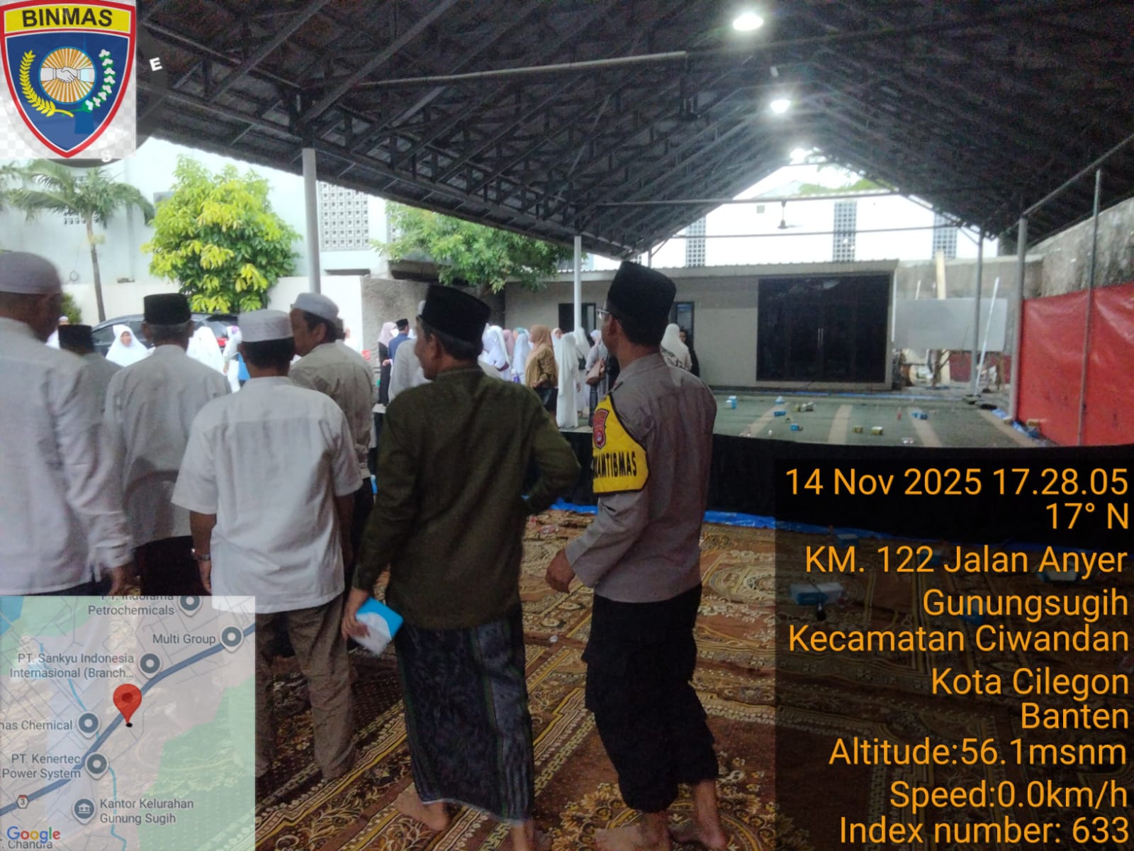 Cilegon - Bhabinkamtibmas Polsek Ciwandan Polres Cilegon Polda Banten menghadiri kegiatan Doa Bersama dan Dilanjutkan Pengajian Rutin dilingkungan Kelurahan Gunung Sugih Kecamatan Ciwandan Kota Cilegon, Jum’at (14/11/2025).
