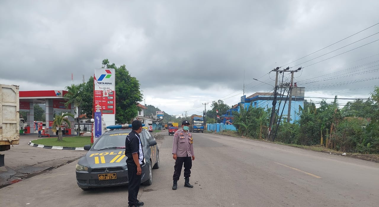 Aksi Nyata Pelayanan Masyarakat Di Sore, Anggota Polsek Bojonegara Bantu Lancarkan Lalu-lintas di Depan SPBU Bojonegara