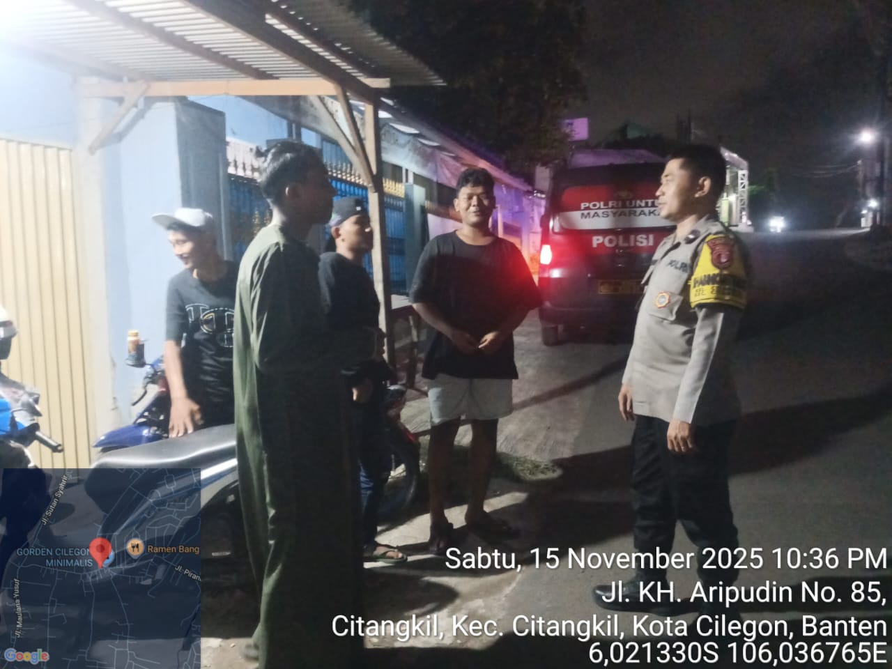 Personil Polsek Ciwandan Polres Cilegon melaksanakan Patroli Malam Rutin Dalam Pencegahan Segala Bentuk Aksi Kriminalitas.