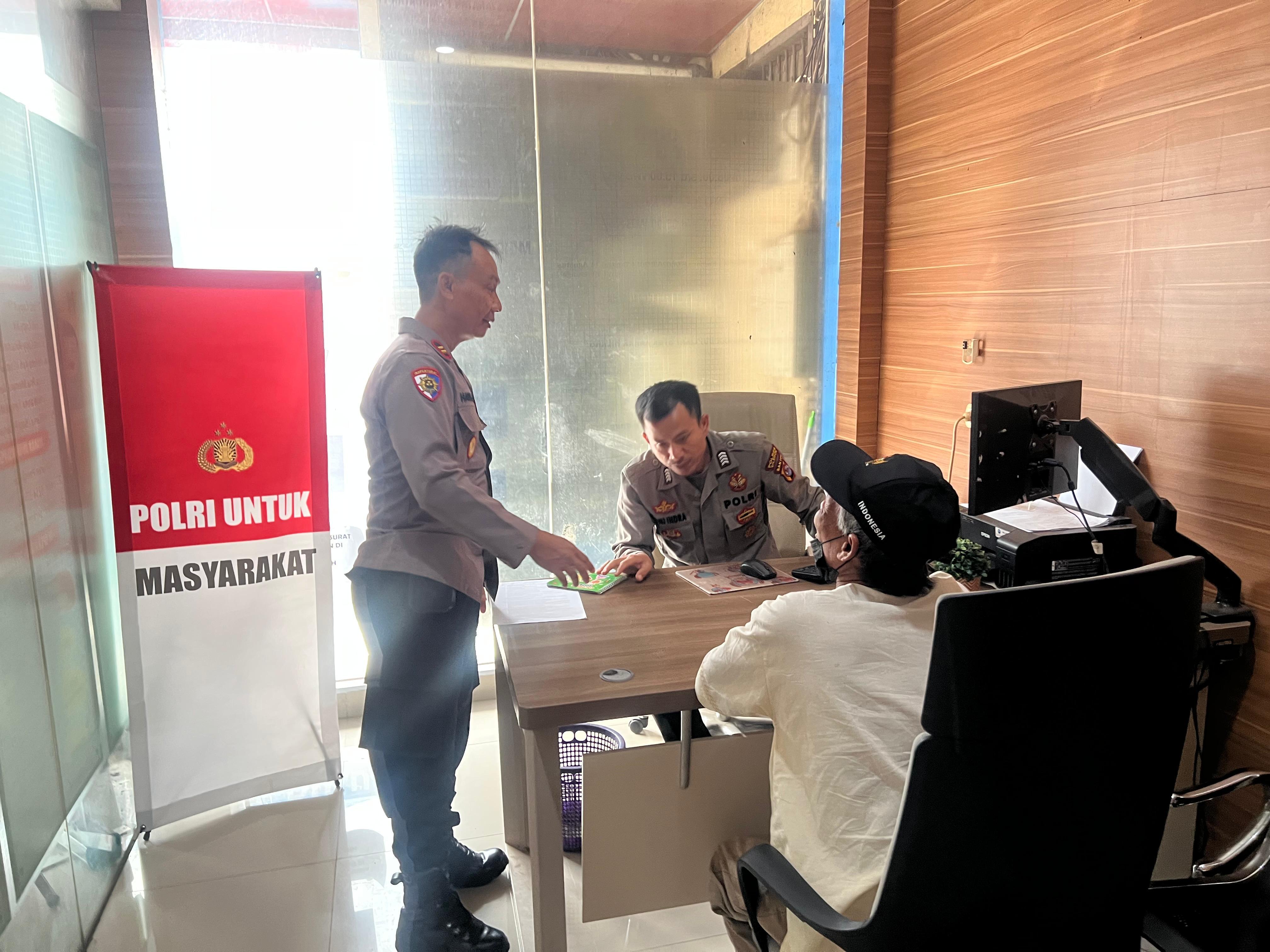 Personil Siwas Polres Cilegon Aipda Emy Prasetyo, turun langsung cek sarana dan prasarana pelayanan publik di Polres Cilegon baik di layanan Sentra Pelayanan Kepolisian Terpadu (SPKT), Surat Ijin Mengemudi (SIM) maupun Surat Keterangan Catatan Kepolisian (SKCK), Senin (17/11/25).