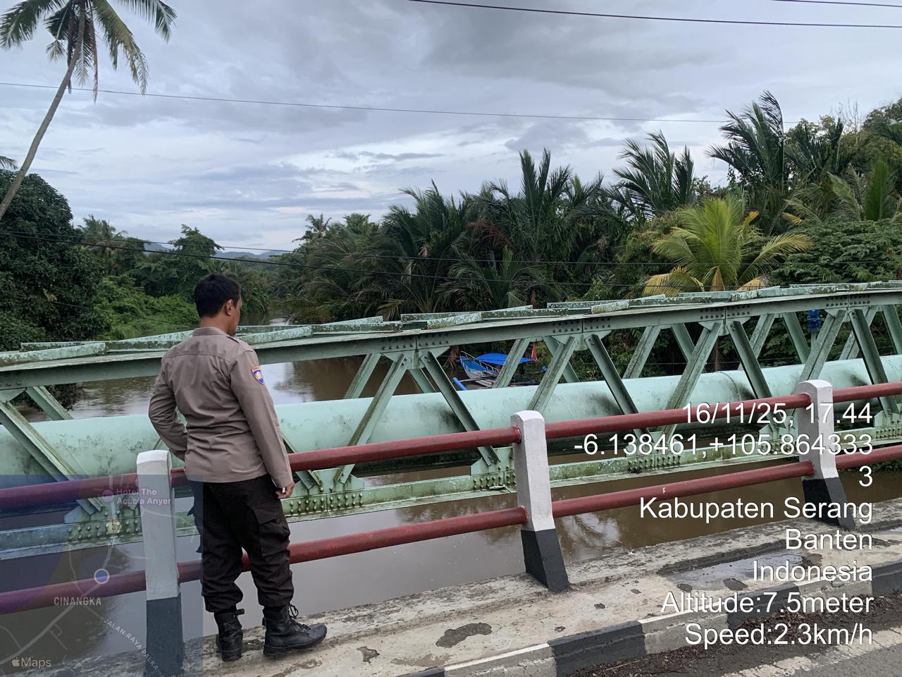 Piket Polsek Cinangka secara rutin melakukan pengecekan kondisi sungai dan berkoordinasi dengan pihak terkait untuk memantau perkembangan debit air. Pemantauan ini juga melibatkan partisipasi aktif dari masyarakat setempat.