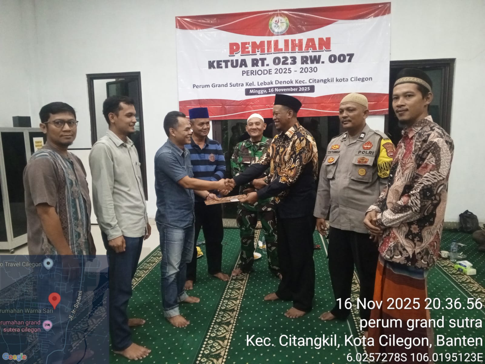 Cilegon -  Bhabinkamtibmas Kelurahan Lebak Denok Polsek Ciwandan Polres Cilegon Polda Banten AIPTU Yudi Setiawan menghadiri pemilihan Ketua RT Lingkungan Perumahan Grand Sutera kelurahan Lebak Denok Kecamatan Citangkil Kota Cilegon, Senin (17/11/2025).