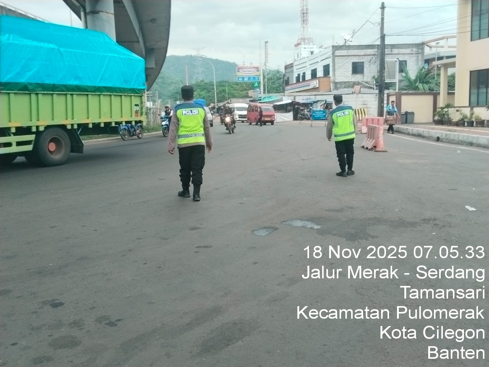 Cilegon - Dalam rangka peningkatan pelayanan prima kepada masyarakat, Kskp Merak Polres Cilegon Polda Banten melaksanakan pengaturan antrian R4 yang akan masuk ke Kapal Ferry di Pelabuhan Merak, Selasa (18/11/2025).