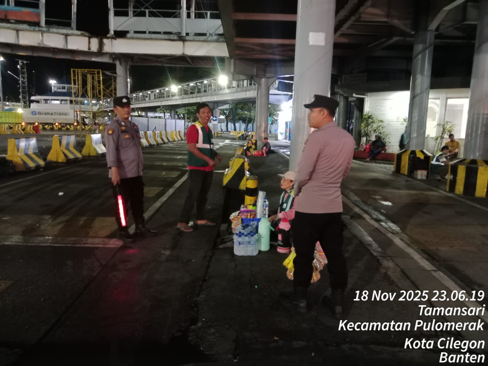 Cilegon - Personil Polsek Kskp Merak Polres Cilegon melaksanakan patroli di kawasan pelabuhan merak memberikan rasa aman dan damai, Rabu (19/11/2025)