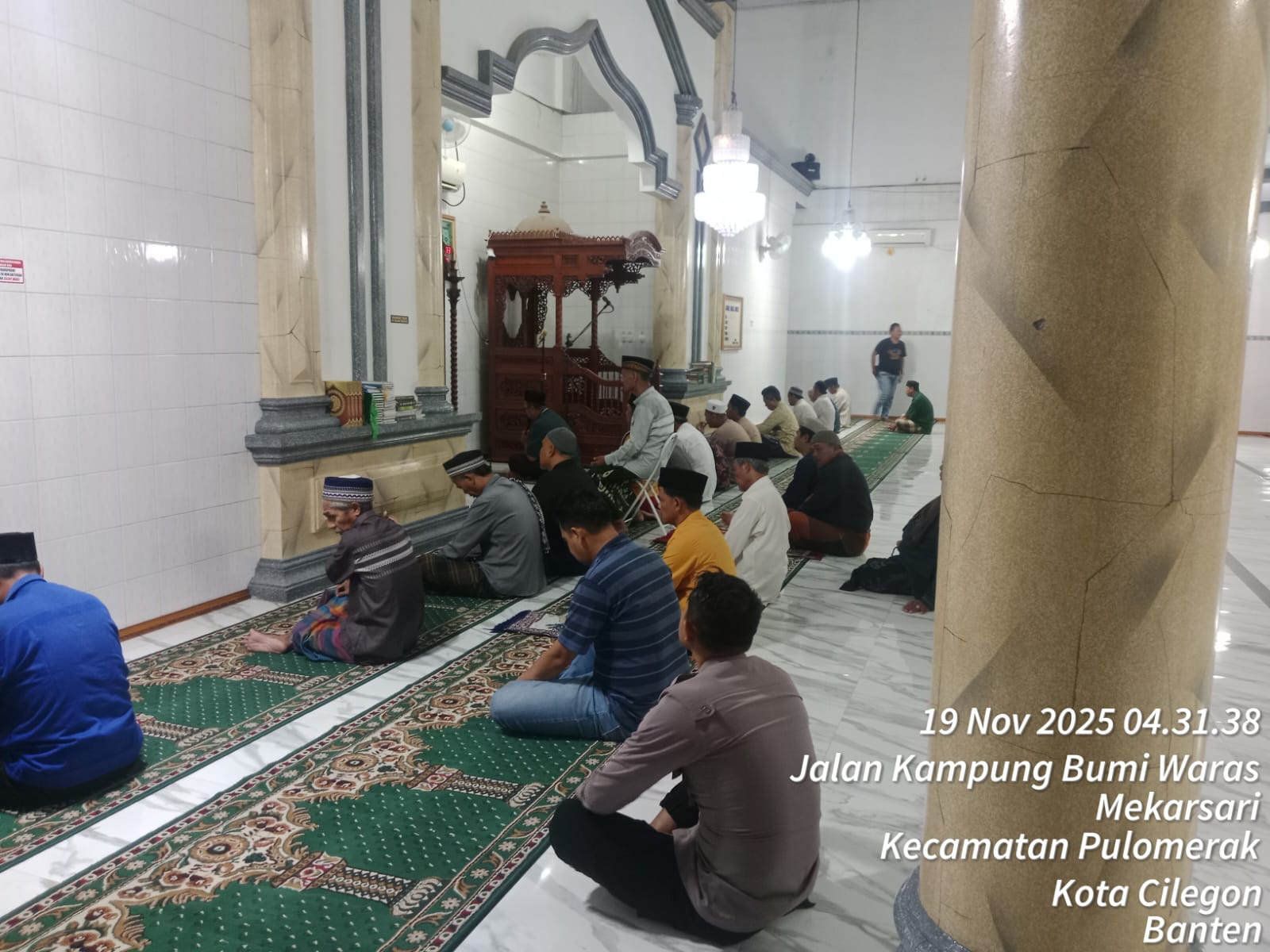 Cilegon – Personil Kskp Merak Polres Cilegon Polda Banten menggelar kegiatan Pembinaan Rohani dengan shalat subuh keliling di Masjid Yang ada Di Daerah hukum Polsek Kp Merak Polres Cilegon Polda Banten, Rabu (19/11/2025).