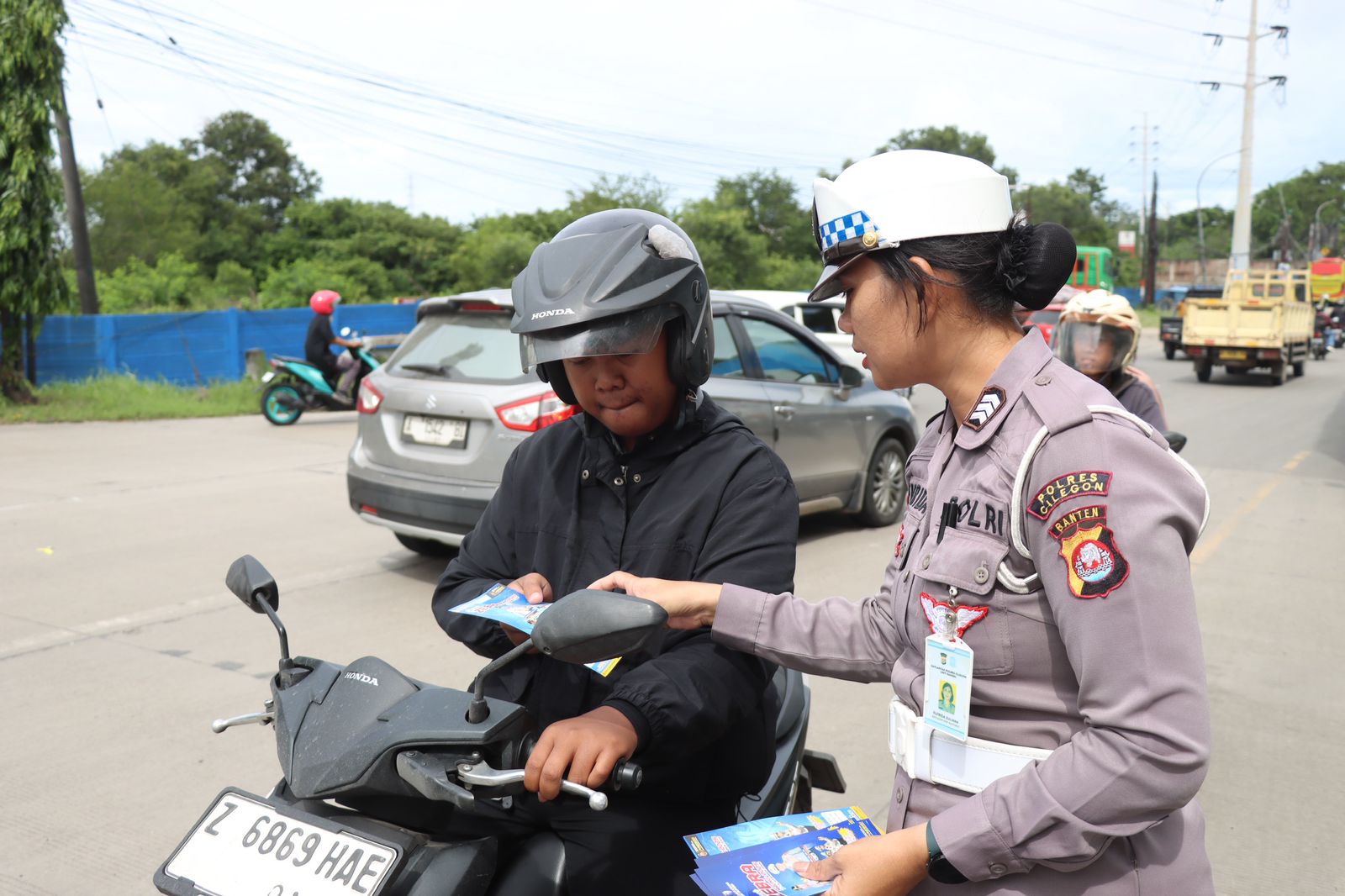 Polres Cilegon Sebar Edukasi Keselamatan Melalui Spanduk dan Leaflet di Ops Zebra Maung 2025