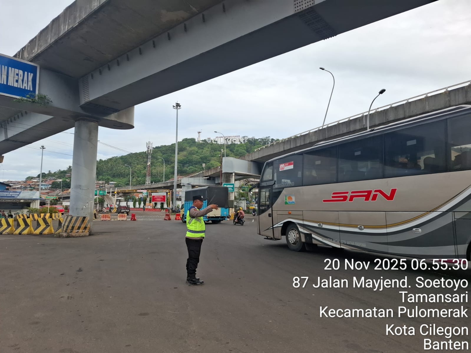 Cilegon - Dalam rangka peningkatan pelayanan prima kepada masyarakat, Kskp Merak Polres Cilegon Polda Banten melaksanakan pengaturan antrian R4 yang akan masuk ke Kapal Ferry di Pelabuhan Merak, Kamis (20/11/2025).
