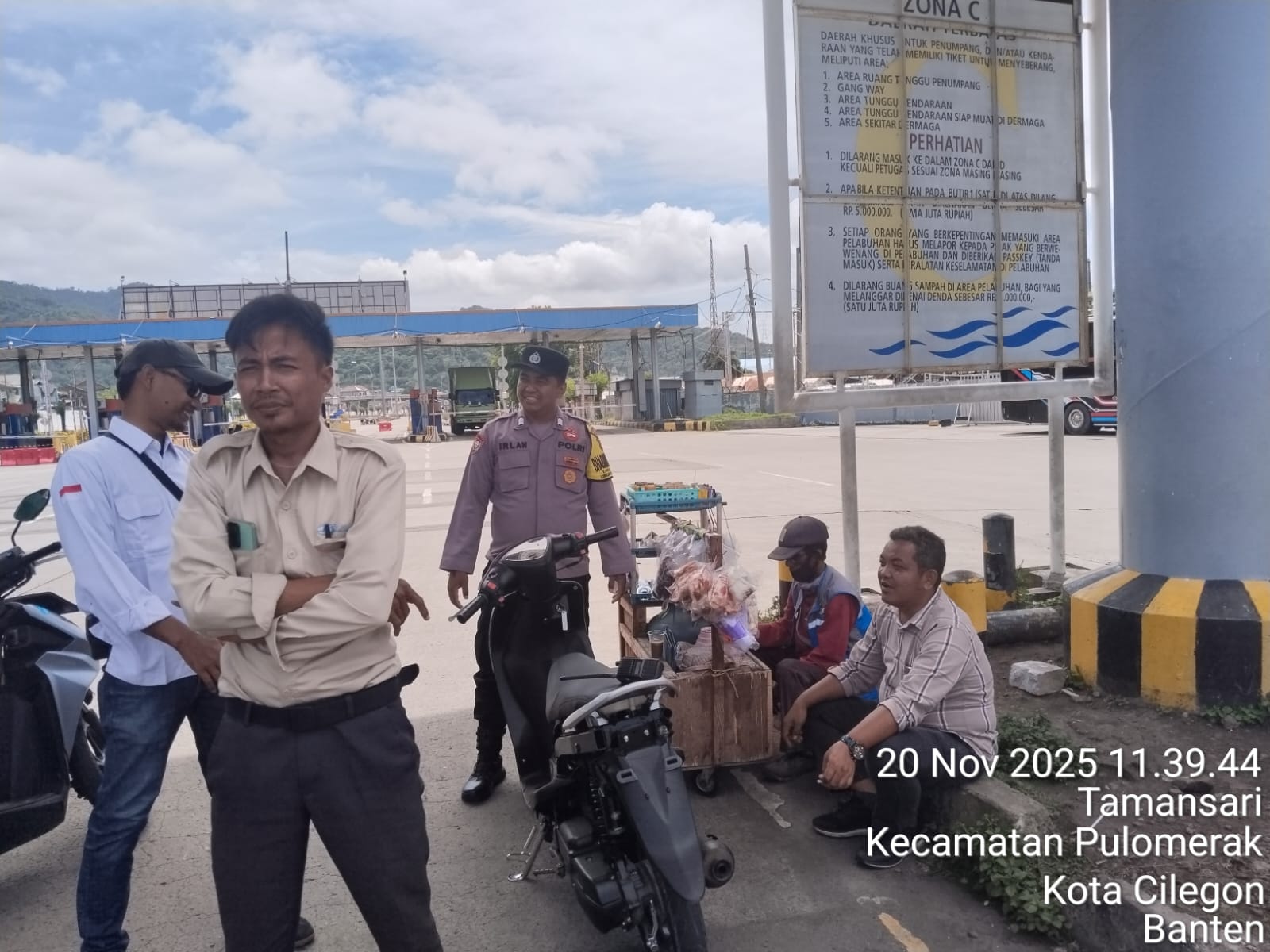 Cilegon - Personel Polsek Kskp Merak Polres Cilegon Polda Banten melaksanakan sambang dan patroli kawasan pelabuhan merak dalam rangka menjaga Harkamtibmas di Kawasan Pelabuhan Merak, Kamis (20/11/2025).