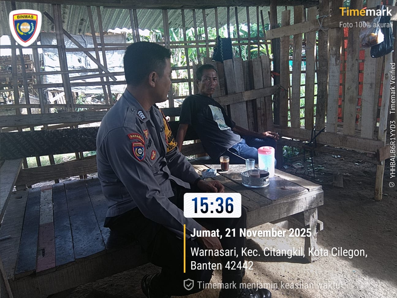 Cilegon - Bhabinkamtibmas Polsek Ciwandan Polres Cilegon Polda Banten Melaksanakan Sambang Dialogis Sambil Ngopi Bareng Warga sekaligus Bahas Ketertiban Dan Keamanan Lingkungan Binaan, Jum'at (21/11/2025).