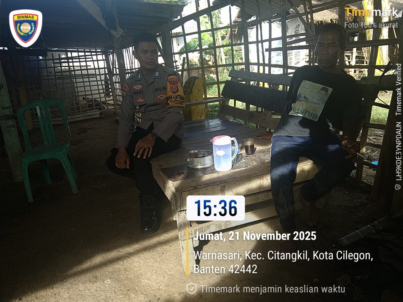 Cilegon - Bhabinkamtibmas Polsek Ciwandan Polres Cilegon Polda Banten Melaksanakan Sambang Dialogis Sambil Ngopi Bareng Warga sekaligus Bahas Ketertiban Dan Keamanan Lingkungan Binaan, Jum'at (21/11/2025).