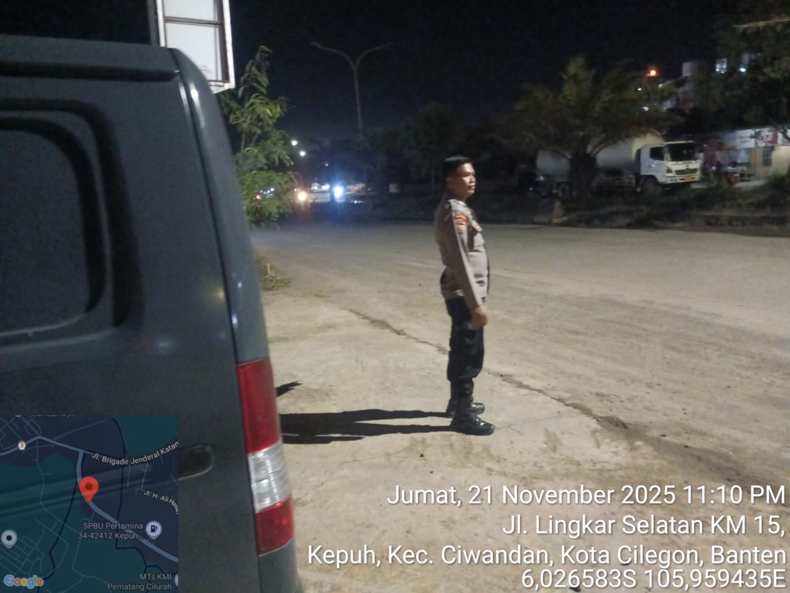 Cilegon - Personil Polsek Ciwandan Polres Cilegon Polda Banten Selalu Melaksanaan Kegiatan KRYD (Kegiatan Rutin Yang Ditingkatkan) Patroli Rutin malam hari di daerah hukum Polsek Ciwandan Guna Persempit Ruang Pelaku Tindak Kejahatan, Sabtu (22/11/2025).