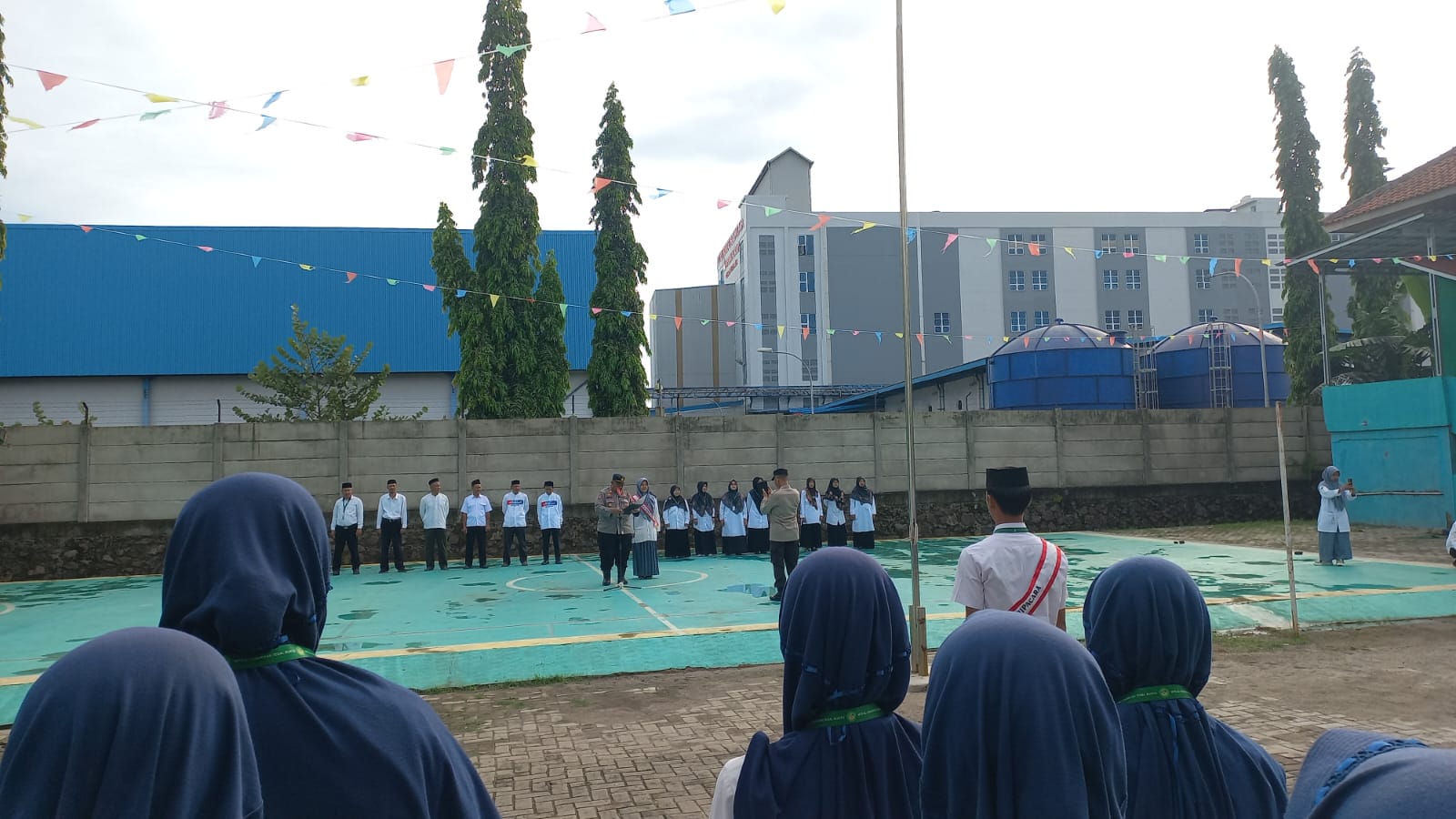 Cilegon – Bhabinkamtibmas Polsek Ciwandan Dampingi Kasat Binmas Polres Cilegon Polda Banten IPTU Muhyidin Pimpin Upacara Dan Menyambangi MTS & MA Dikelurahan Tegalratu Kecamatan Ciwandan, Menyampaikan Pesan-pesan Kamtibmas Dan Memberikan Imbauan, Senin (24/11/2025).