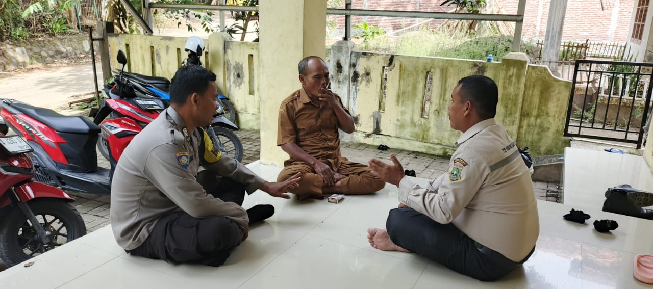 Cilegon -  Bhabinkamtibmas Polsek Anyar Polres Cilegon Polda Banten Bripka Asep melaksanakan Sambang dialogis dengan Sekdes Ds. Bandulu Kec. Anyar dan Pendamping Desa dalam rangka menjaga di Desa Binaannya sebagai bentuk mendukung Program Quick Wins Presisi Polri, Selasa (25/11).