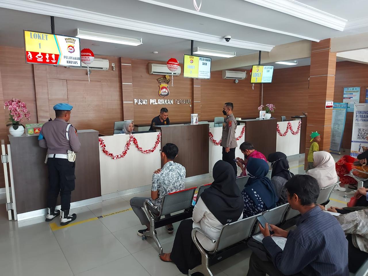 Personil Siwas Polres Cilegon Aipda Emy Prasetyo, turun langsung cek sarana dan prasarana pelayanan publik di Polres Cilegon baik di layanan Sentra Pelayanan Kepolisian Terpadu (SPKT), Surat Ijin Mengemudi (SIM) maupun Surat Keterangan Catatan Kepolisian (SKCK), Jumat (18/10/24).